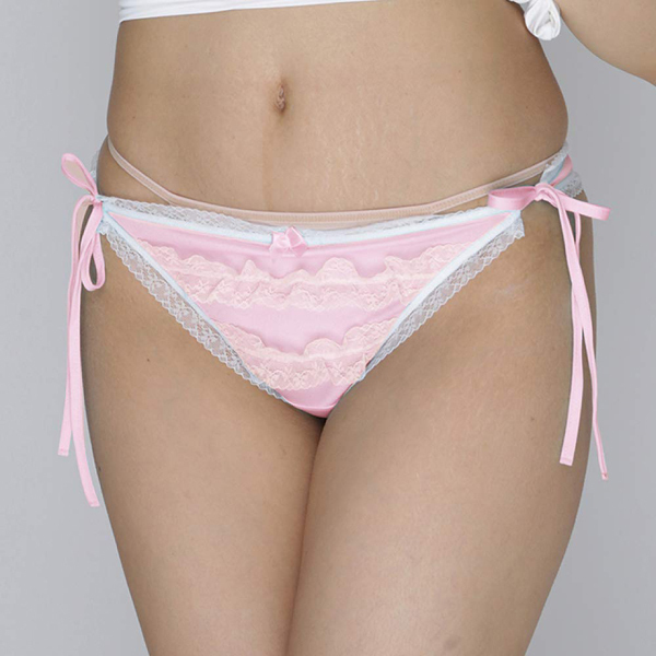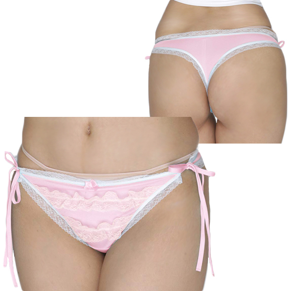HOME> ランジェリー > ショーツ > 2段のフリルレースが可愛い光沢Tバック ピンク