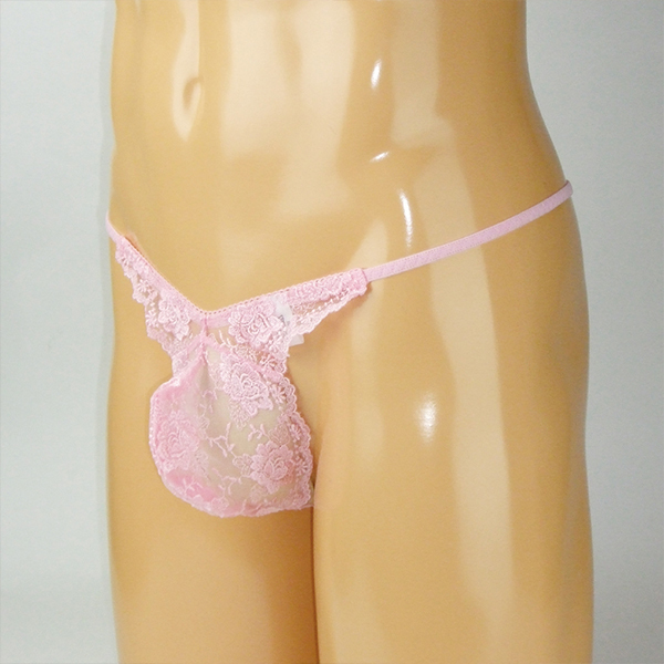 HOME> ランジェリー > メンズ ショーツ・ビキニ > メンズ スケスケシースルーレース付き脇細Gスト ピンク M