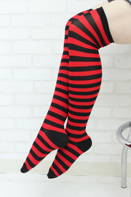 HOME> コスプレ衣装 > 小道具(ニーソックス・猫耳) > ニーハイボーダー レッド・ブラック 幅1cm
