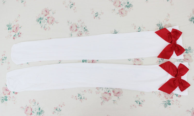 HOME> コスプレ衣装 > 小道具(ニーソックス・猫耳) > リボン付きニーハイ 白×赤リボン