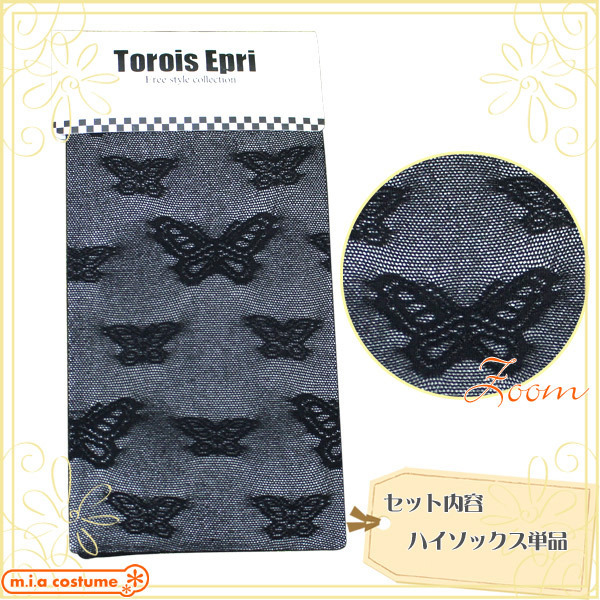 HOME> コスプレ衣装 > 小道具(ニーソックス・猫耳) > 蝶柄ハイソックス 黒 フリーサイズ