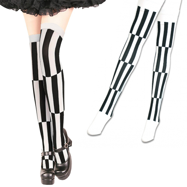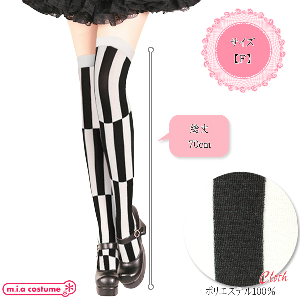 HOME> コスプレ衣装 > 小道具(ニーソックス・猫耳) > 切り替えストライプ柄ニーハイストッキング 色白×黒