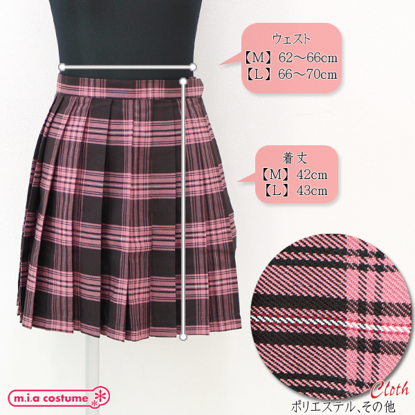HOME> コスプレ衣装 > 小道具(ニーソックス・猫耳) > ポケット付きのチェック柄プリーツスカート単品 ピンク×ブラウン Lサイズ