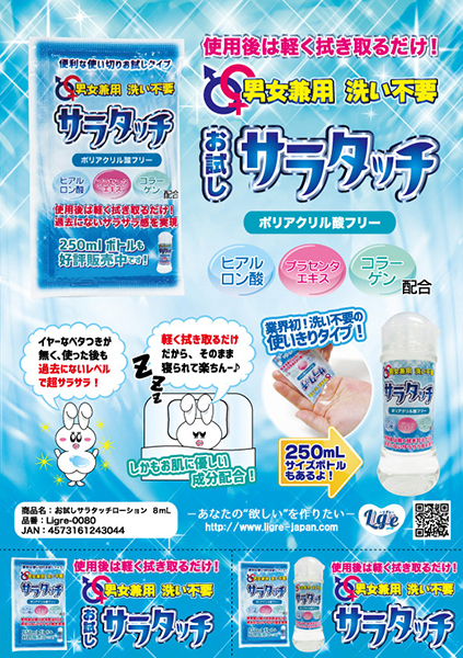 HOME> ローション > ローション・潤滑ゼリー > 男女兼用 洗い不要!サラタッチ 使い切り8ml